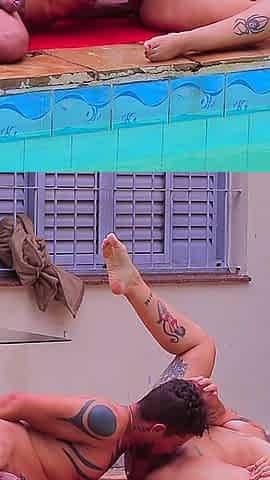 Stepmom and Stepson Fuck in the Pool While Their Husband Is Away!
