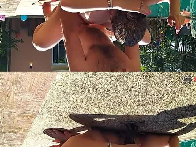 Girl Mounts Her Wet Pussy On A Cock By The Pool With Dark Haired