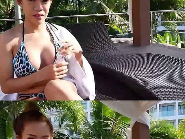 Two Stunning Babes Suckinga A Hard Cock Near The Pool