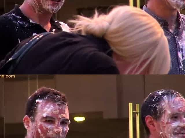 Electro stimulation milking training of a latex puppy juicy in jizz pool