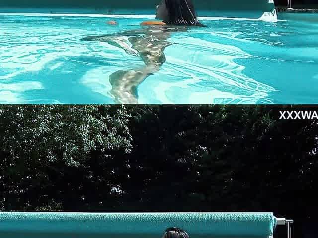 Insane gal masturbates in a public pool and tries to hide but I filmed her