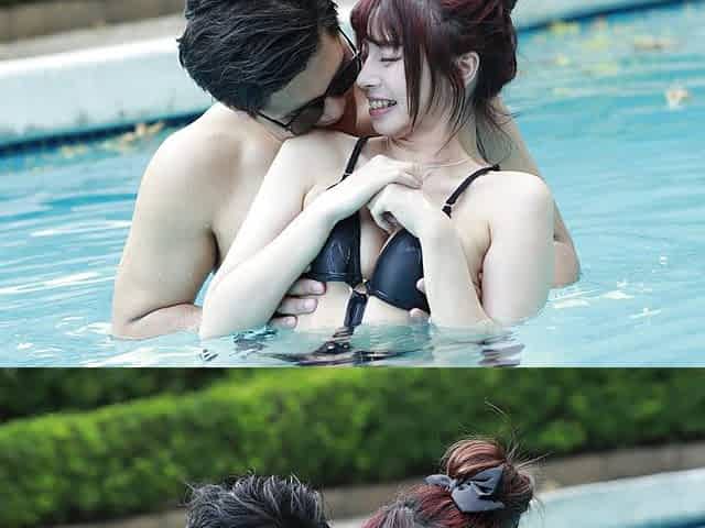 Boyfriend and girlfriend have a wild blowjob and sex session in the pool