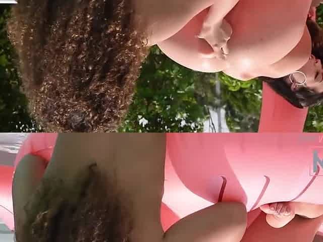 Large butt brunette hair is having sex next to the swimming pool, in the centre of the day
