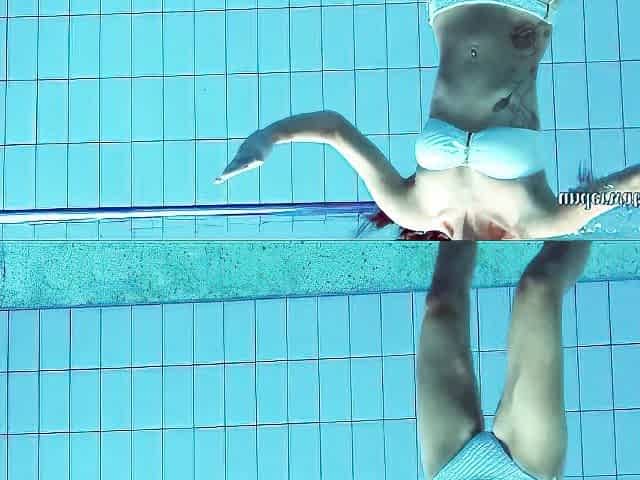 Sexiest small teen Lizi Vogue swims nude in the pool
