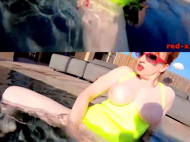 Breasty redhead wife masturbates whilst outside in the pool Porn Episodes - Tube8