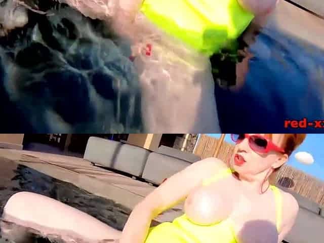 Fucks Her Pussy With A Toy In The Pool With Red Xxx