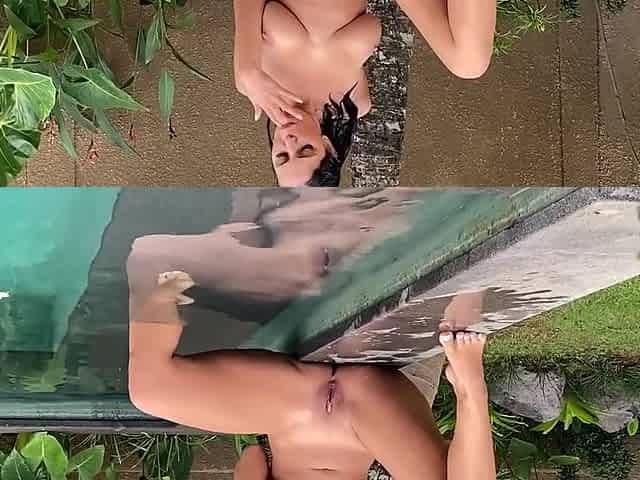 Small titted Briana toying herself poolside