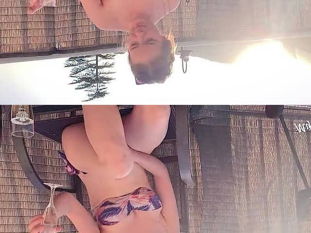 Stunning Babe Addie Andrews Takes A Topless Sun Bath & Fishes A Huge Cock Out From The Pool