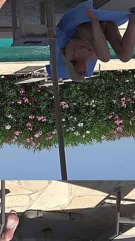 Oiled Hottie Blows Personal Trainer Outside By The Pool
