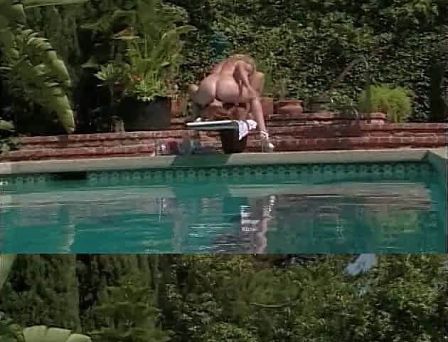 Large-titted golden-haired Caroline De Jaie banged by the pool
