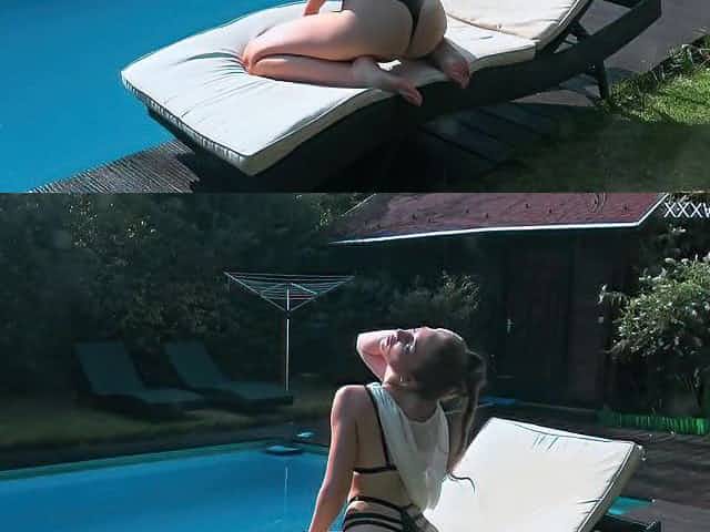 Poolside Lesbian Scissoring and Facesitting - young babes by the pool