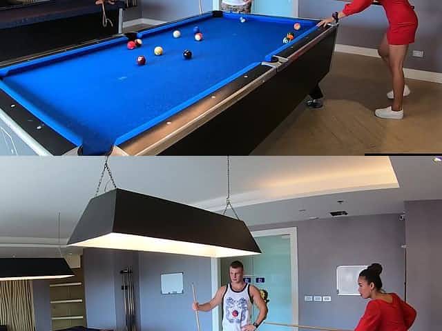 Amateur couple playing pool and having passionate sex afterwards