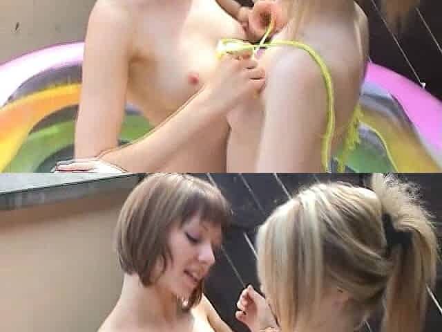 Big-titted ash-blonde hotties Vicky Vette and Sunny Lane have some fun by the pool