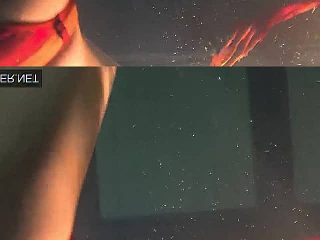 Red underware chick Mary Kalisy gets undressed in the swimming pool