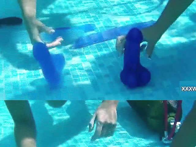 Two hot lesbians playing with dildos in the pool