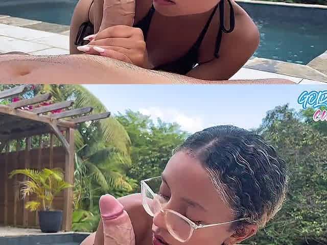 LALIN GIRL GIVES A SLOPPY ORAL OUTSIDE AT THE POOL