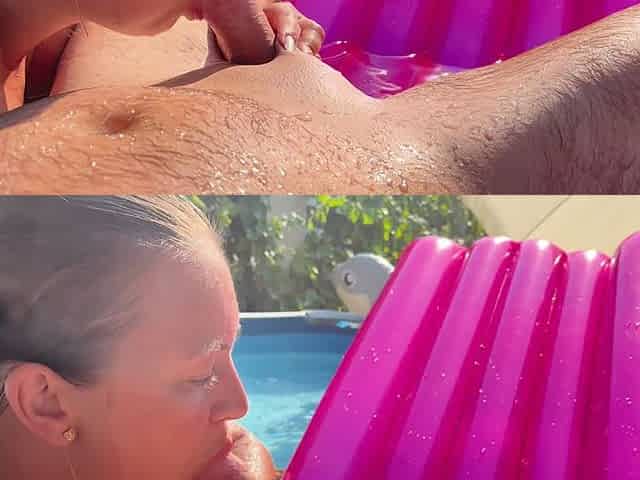 Outdoor Blowjob in Swimming Pool - Sexy Deepthroat Action