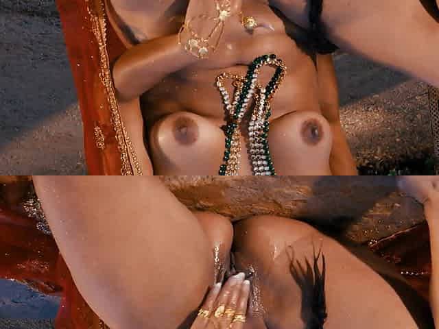 Exotic babe Jasmine Sherni plays with her pussy poolside