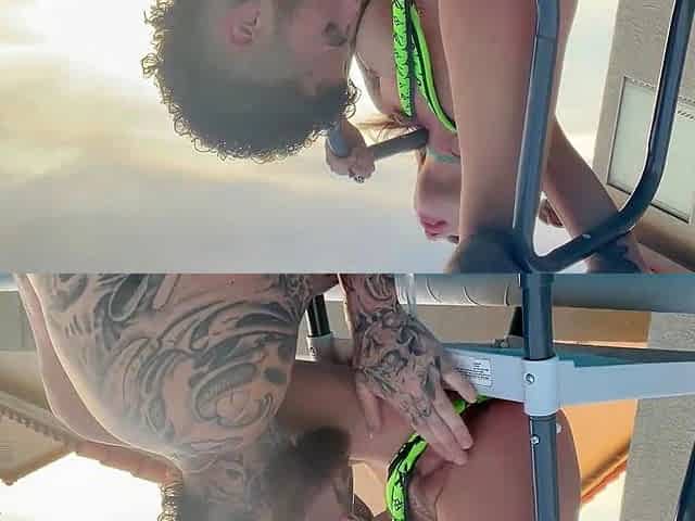 Oily Asian In Slingshot Bikini Blows Pool Guy