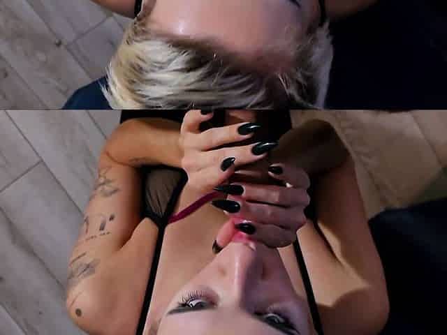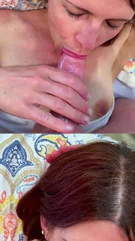 Wife sucking dick and swallowing huge cumshot POV