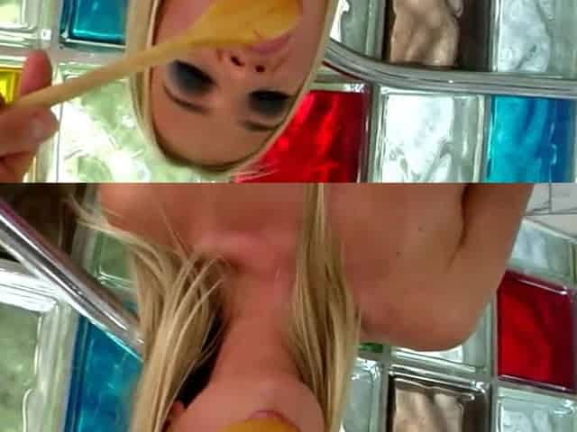 Skinny blonde pornstar Nikki Riddle gaped and fingered