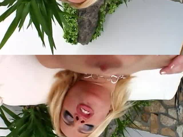 Hot blondie with immense orbs and a poking assets shows off