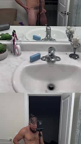 Mirror stroke with cum