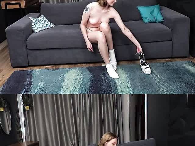 An awesome solo masturbation with a long-legged brunette Alisa D.