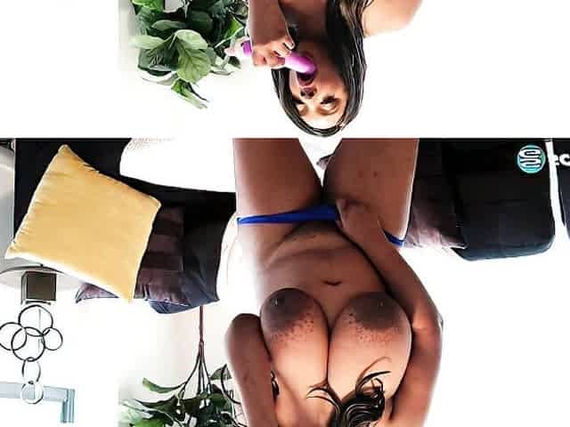 Beautiful BBW ebony Monica Keyes is fucking with a purple dildo