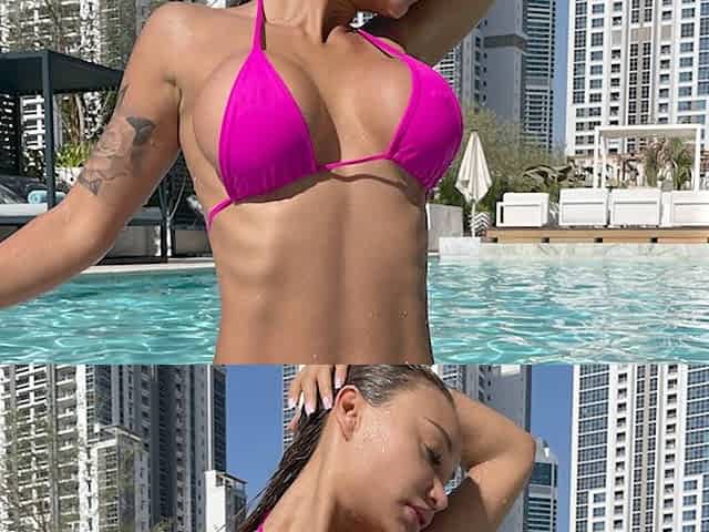 Busty blonde Romanian babe posing