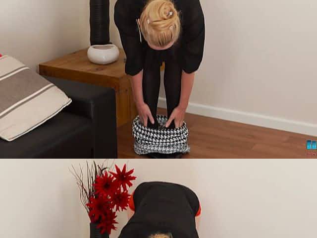 Blonde Lacey Taste wearing black fishnet lingerie posing