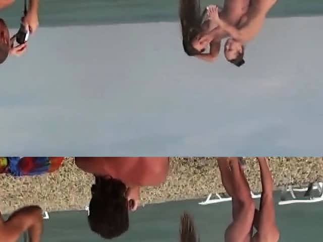 Voyeur on public beach. Girls posing