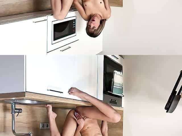 Good kitchen masturbation with a passionate long-legged Samantha Hayes