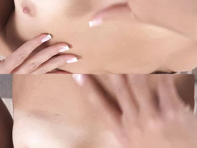 Good masturbation session with a long-legged blonde girlfriend Milky