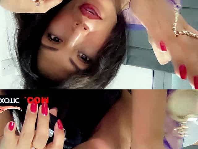 An awesome brunette Jolie Butt fucks with a huge red dildo