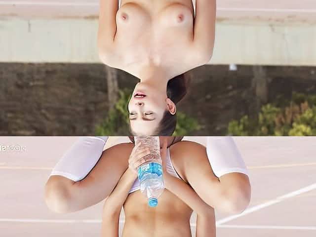 Large titted brunette hair is often posing topless in front of the camera, 'cuz it feels admirable