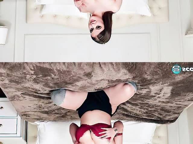 Gorgeous brunette babe Sabrisse A sticks fingers in her accurate tight pussy