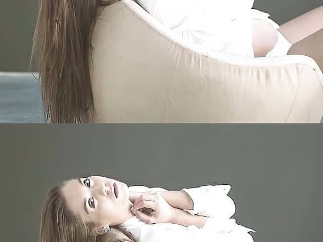 Huge natural boobs MILF Iryna Ivanova posing in provocative white lingerie