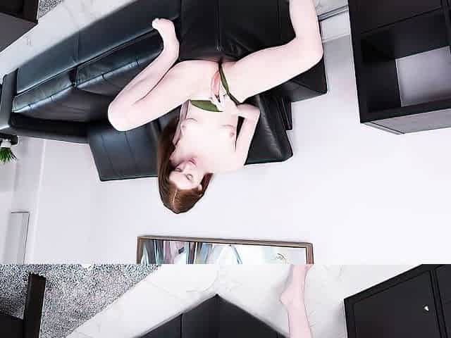 Flexible redhead Marina Vaylor nicely plays with her shaved pussy