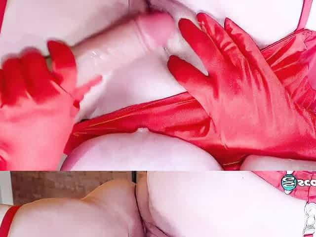 BBW chick in red lingerie Anna Katz fucks with a huge dildo