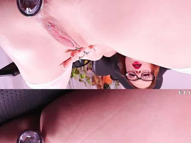 Flexible chick in stockings sticks a fat dildo deep in her anal hole
