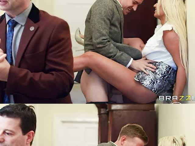Sweet glamorous blonde Brooklyn Blue cheats with a giant dick