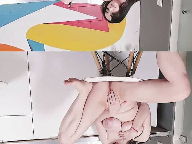 Gorgeous solo play in the kitchen with a hot busty model Remido