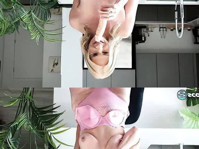 An awesome busty blonde Lady Sextasy nicely fucks with a pink dildo