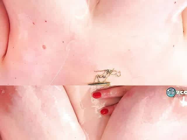 Blonde girlfriend Nyomi is enjoying touching her wet shaved pussy
