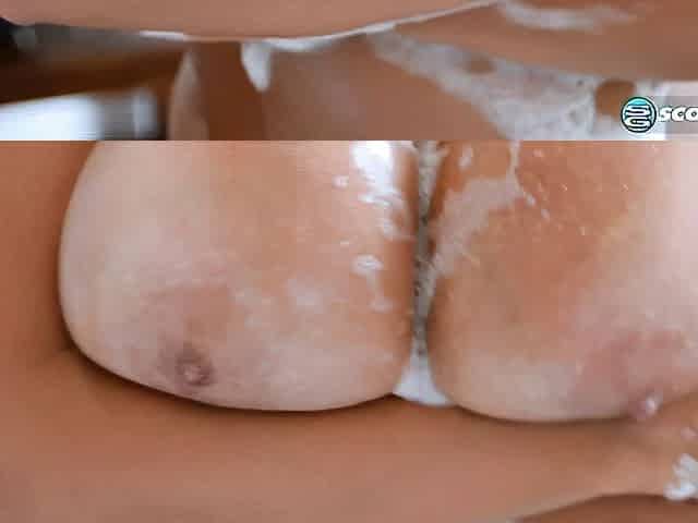 Soapy solo masturbation with a big-boobed brunette Christina Santes