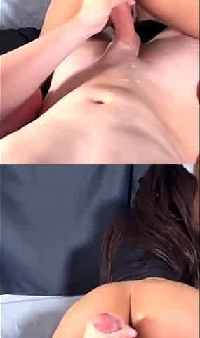 Skinny Amateur Brunette Gives Boyfriend a Steamy Handjob and