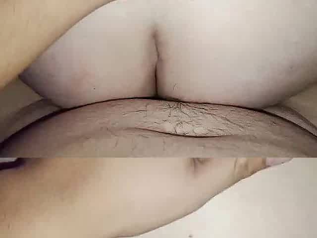 Slutty honey sliders her boyfriend's jock right between her large natural bazookas