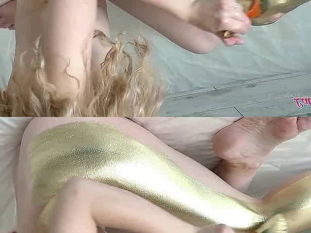 Hot golden-haired makes a golden body art and bangs with a neighbour