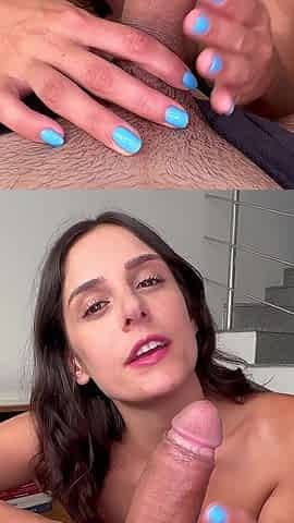 Stepdaughter Gives Blowjob in POV Fucks Cum on Belly